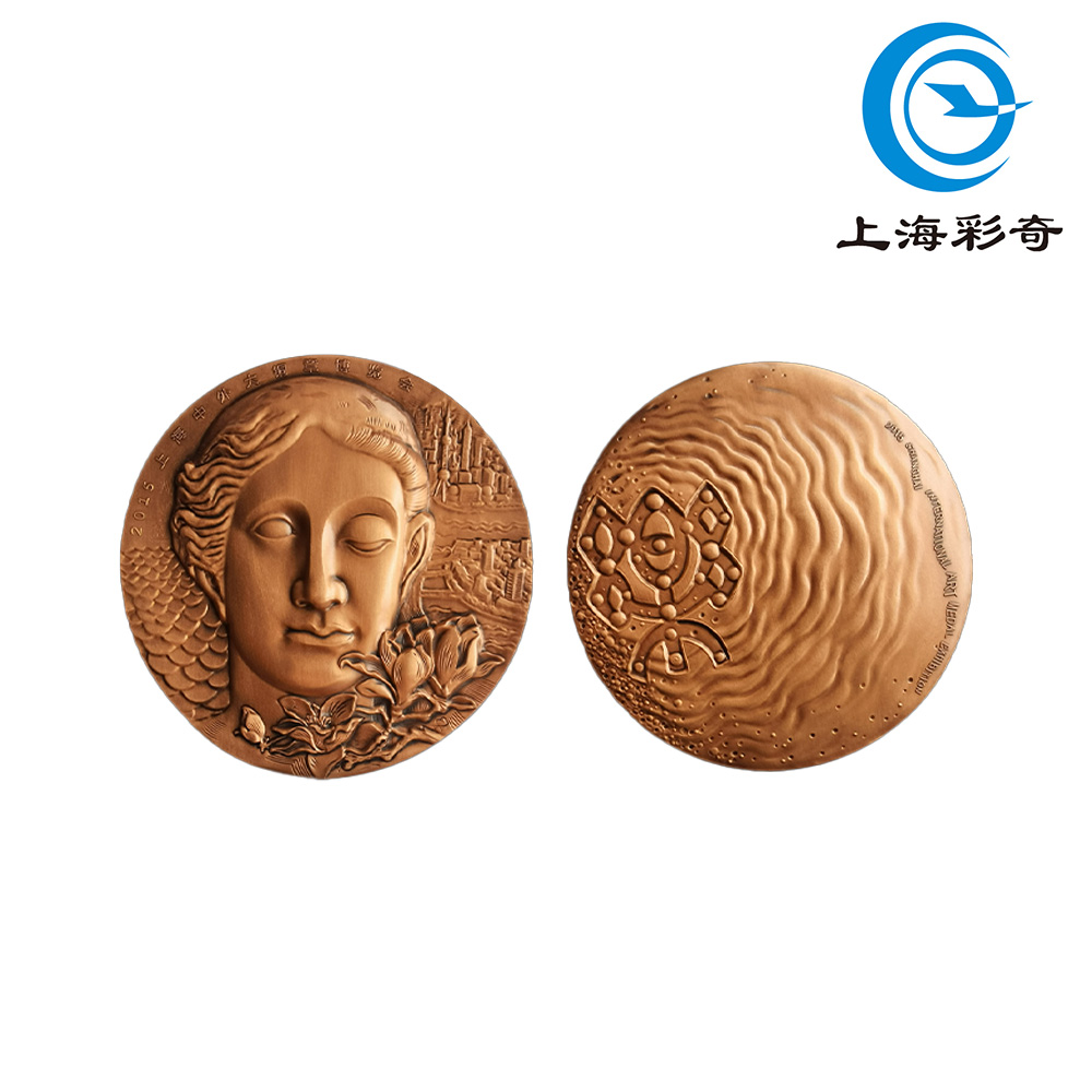 Como se muestra en la presentación del producto, un lado presenta un diseño bellamente esculpido con motivos florales y arquitectónicos, que refleja el encanto de Shanghai. El otro lado presenta un patrón texturizado con diseños simbólicos, que muestra detalles intrincados y creatividad artística. La técnica de tallado en alto relieve y la artesanía precisa resaltan texturas finas y estructuras en capas, resaltando un arte excepcional. El material de bronce violeta realza el atractivo estético de la medalla con su tono y brillo distintivos.